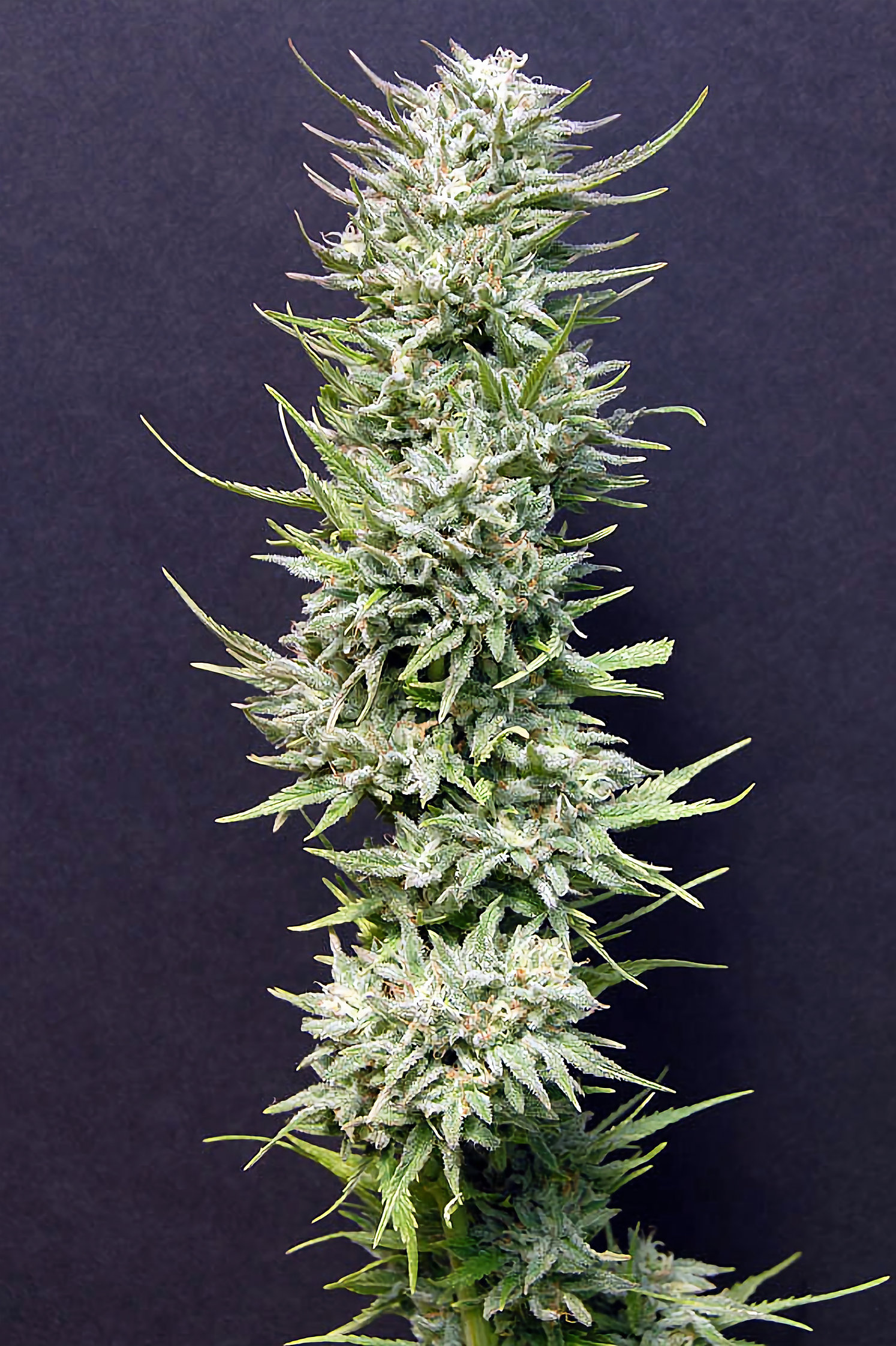 Big Freeze is a re-worked, teeth-meltingly delicious Sweet Tooth that was discovered in British Columbia. It expressed such massive, sugary crystal production that BigHead worked on breeding it with the frostiest White Widow imaginable- their White Knuckle SC. This was then finally bred with BigHead #1 creating a plant that produces ginormous, dramatically dense BigHead buds that look frozen with the abundant mass of glittering crystals that weigh the entire plant down. Big Freeze reminds us of a tall, snow covered Canadian pine when ready for harvest, with that classic Christmas tree shape and it grows a dense, central kola that seems to get harder and harder towards cropping time. The smell and taste is earthy with sweet vanilla and even subtle banana and the effects are brutally powerful and cerebrally uplifting, promoting a feeling of deep purity and cosmic positivity. It is a great strain for the SOG Method, providing a glacial ocean of connoisseur grade buds for those who are serious about big yields and fanatical about frost.