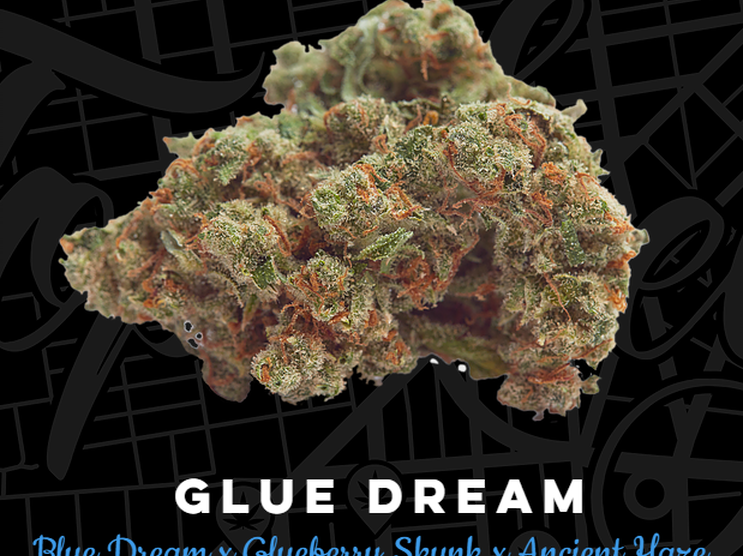 Certainly one of Californias leading strains of modern times. An especially pungent Blue Dream phenotype has been meticulously crossed with two early unreleased projects- Glueberry Skunk and Ancient Haze. In rigorous testing and selecting it was agreed that this genetic profile maximizes what’s great in the original strain by adding more depth to the haze and berry, increasing trichome production whilst maintaining the clear, euphoric Sativa effects that mean for a sumptuous daytime choice. A beautiful, heavy yielding pheno of Blue Afghani was used in the breeding of Glueberry Skunk to further add depth to the sweet deep Blueberry/Mango taste and give weight to buds. Flowers are numerous, large, often blue/silver in color and sticky as hell…the combination of these sticky, clear trichomes and the pale blue buds make for a ghostly, ethereal look to the plant in full flower.