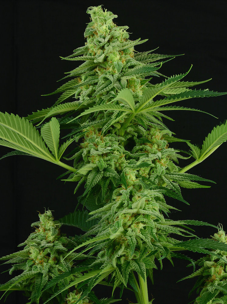 A beautiful, specially selected Old School Haze provides the background for this Critical Mass hybrid. Typically Sativa, it grows tall, finishing at around 2-3 meters in perfect conditions, and was chosen for its mountainous, Christmas-tree style growth structure that becomes the framework for some of the most intoxicating flowers in our genetic library. It is a very homogeneous strain…nodes are equally spaced and the profile is nearly always symmetrical as it soars upward during its vegetative cycle. Unusually for a Haze it has a violent and furiously short flowering period and this is due to the Monster Mass influence in its genetic makeup- a most appealing trait for those that love Sativa strains but struggle to fit them in with their normal grow schedules. As recommended with Monster Mass, FIMing these photoperiod plants early and applying low stress training (LST) will fully maximise the final crop and can make all the difference in the quality of the final product which will consist of huge, mid-density silver/blue buds that should be fully loaded with oily, pungent, psychoactive resin and stinking of stinking of sharp Gin/Citrus with Hazey pine undertones.